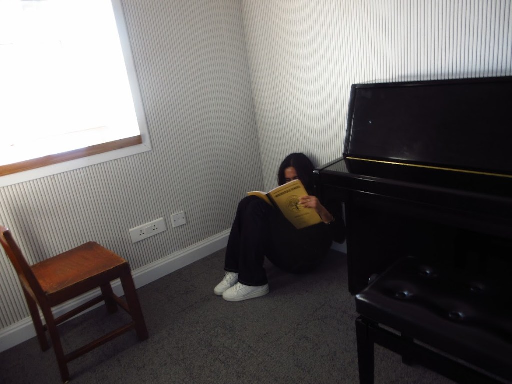 My favourite study spots are the Dining Hall Corner Tables– there’s just something quite comforting about there always being good food, a constant supply of water, and friends around at all times. It’s a perfect hub for studying, whether that’s typing or working on paper. It has the funnest little breaks, and overall, it’s the perfect balance between productivity and connection, where I get to feel focused while not being closed off from everyone.