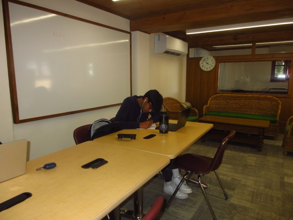 If you want to be near your friends but still want to focus, the corner tables in the Dining Hall are the best spot ever. They have plug points (though not all work), and the best part remains constant access to food, snacks, and hot cocoa! Try to grab a table in the corner to stay away from the main chaos, and yet be close enough to your friends for the little study breaks. These tables are the perfect size for any sort of work involving paper, especially if it’s during a free period (where the dining hall is generally deserted). This is also only good if you don’t get distracted too easily.